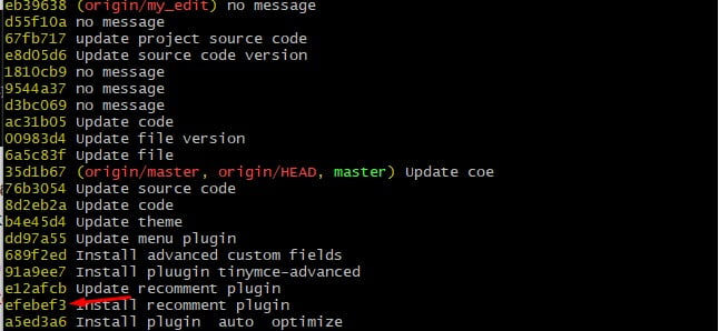 จากรูปด้านบนหากเราต้องการย้อนไปที่ Commit ID "efebef3" เพื่อตรวจสอบดูว่าก่อนทำการ Update recmmend plugin เว็บไซต์ทำได้หรือไม่ หน้าตาเป็นอย่างไร โดยเราสามารถทำได้ ดังนี้