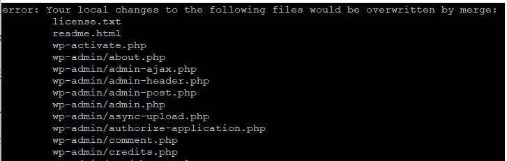 - error: Your local changes to the following files would be overwritten by merge: คือ Git ตรวจสอบพบว่า code ฝั่ง Remote และ Local ไม่ตรงกัน