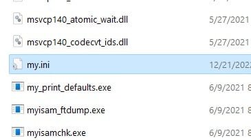 หลังจากปิด Service แล้วไปที่ C:\xampp\mysql\bin\ จากนั้นมองหาไฟล์ "my.ini" และเปิดขึ้นมาเพื่อทำการแก้ไข